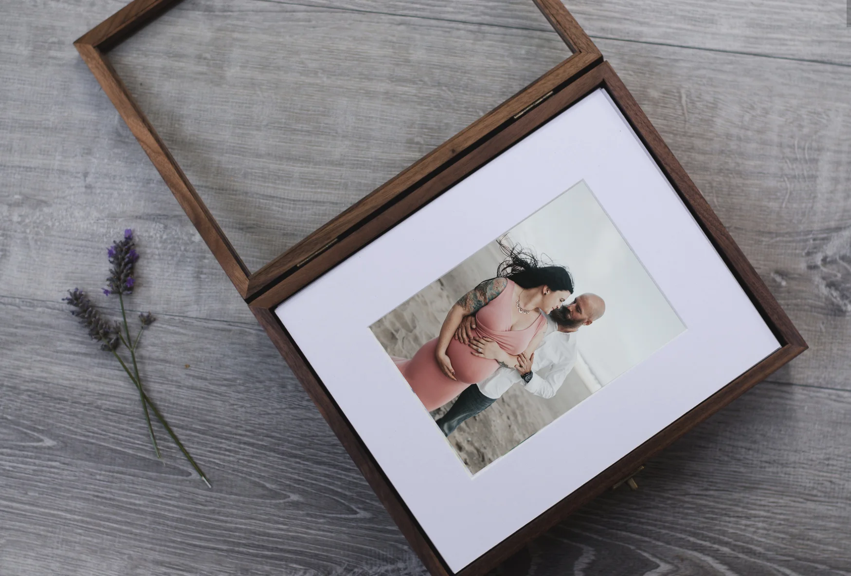 Made from 100% solid black walnut, this photo box has a clear acrylic top, and is secured with a beautiful antique brass swing latch, perfect for storing your memories for years to come. Holding up to 20 8x10 prints, this box is perfect for clients who want to gift images from their session, store them as keepsakes, or that love to switch up the decor in their house, and want to keep additional prints. Your custom box comes with up to 20, 8x10" prints printed on Kodak Professional Endura Premier Paper (Traditional E-Surface Paper), the most popular paper used by professional photographers. This paper has a standard Archival Value of 100 years in home display; 200 years in dark storage.